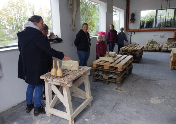 Ein besonderes Angebot des Heimatvereins Billerbeck lockte in den Herbstferien Kinder mit ihren Eltern und Großeltern in die alte Bildhauerei Dirks: Unter dem Motto „Stein verbindet“ konnten die Teilnehmenden selbst zu Hammer und Meißel greifen und kleine Kunstwerke aus Baumberger Sandstein gestalten. Unter der fachkundigen Anleitung von Vereinsmitglied und Steinbildhauermeister Bernd Dirks entstanden vor allem Naturmotive nach der Vorlage von Herbstlaub. Mit viel Konzentration, Geduld und Begeisterung arbeiteten die Kinder an ihren Werken – unterstützt von ihrer erwachsenen Begleitung, die ebenso großen Spaß an der kreativen Arbeit hatten. Es musste schon eine Zeitlang gearbeitet werden, am Ende konnten alle stolz ihre fertigen Kunstwerke präsentieren. Der Heimatverein freute sich über die gute Beteiligung und das schöne gemeinsame Erlebnis, das zeigte, wie Stein Menschen und Generationen miteinander verbindet.