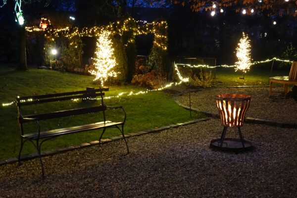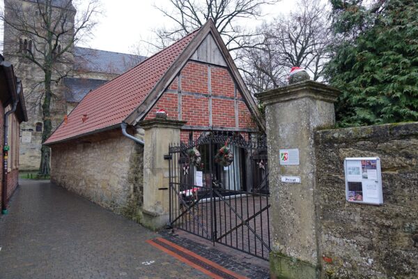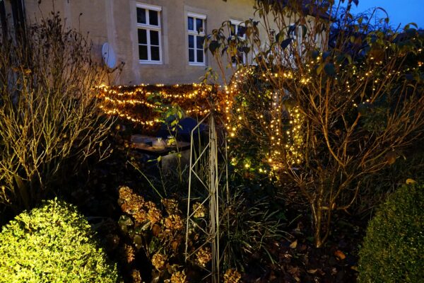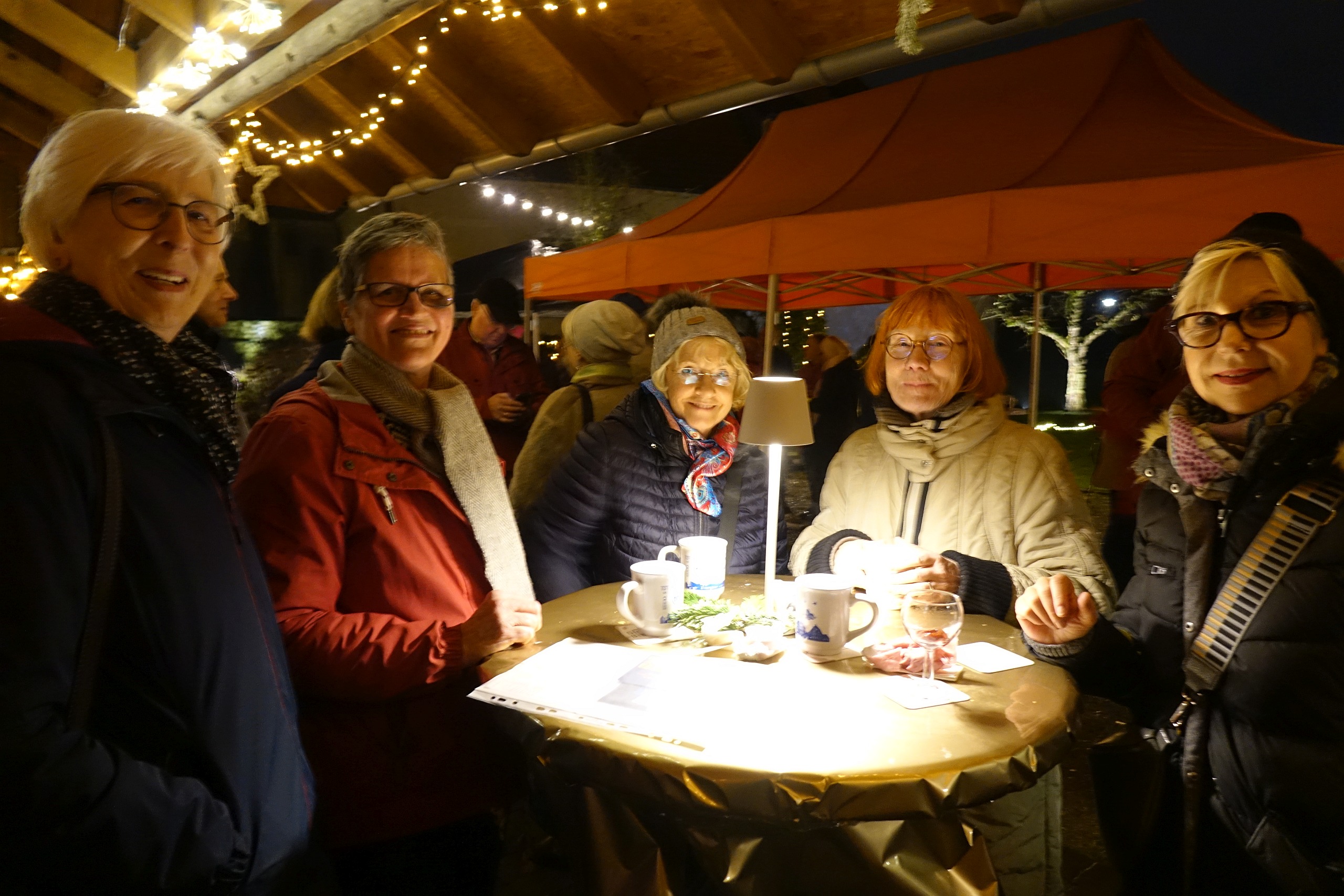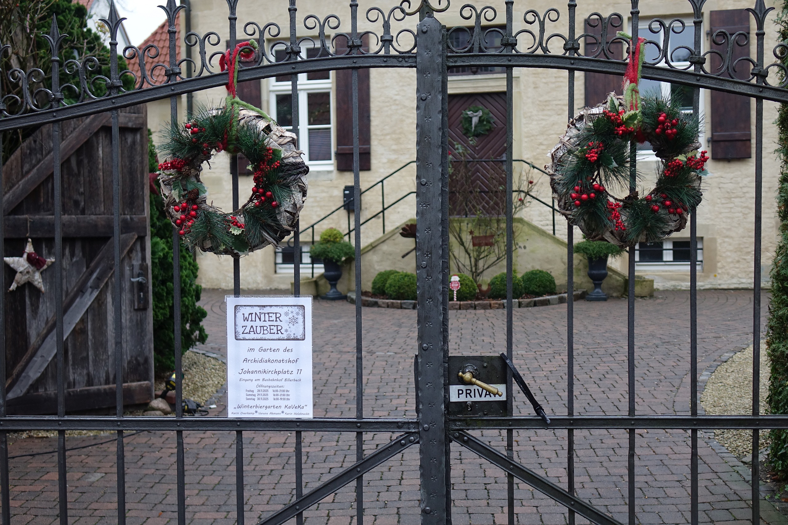 Im Anschluss an die Führung in der Webwerkstatt im Speicher Nr. 3 folgten etliche Mitglieder der Einladung zu einem Umtrunk beim „Winterzauber“ im Innenhof des Archidiakonats. Die Organisatorinnen des „Winterzaubers“, („KaVeKa“) Karin Overkamp, Verena Ahmann und Karin Holzknecht, hatten eine wunderschöne Atmosphäre auf dem Anwesen am Johanniskirchplatz 11 geschaffen, die eintauchen ließ in die besinnliche Zeit des Jahres. Nach einem turbulenten Jahr 2025 genossen die Mitglieder und viele andere Gäste das adventliche Flair und die gemütliche Stimmung dort, bei leckeren Heißgetränken, Wurstbrötchen und angenehmen Gesprächen. So wurde dieses Treffen zu einem stimmungsvollen Jahresausklang.