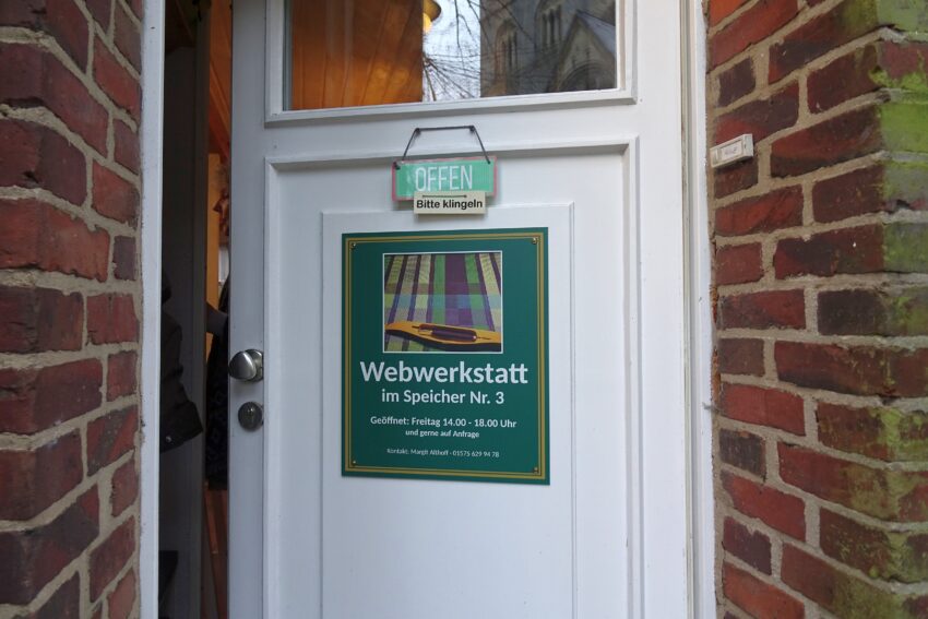 Die Webwerkstatt ist freitags von 14:00 bis 18:00 Uhr geöffnet. Besuche auf Anfrage und in kleinen Gruppen sind möglich.