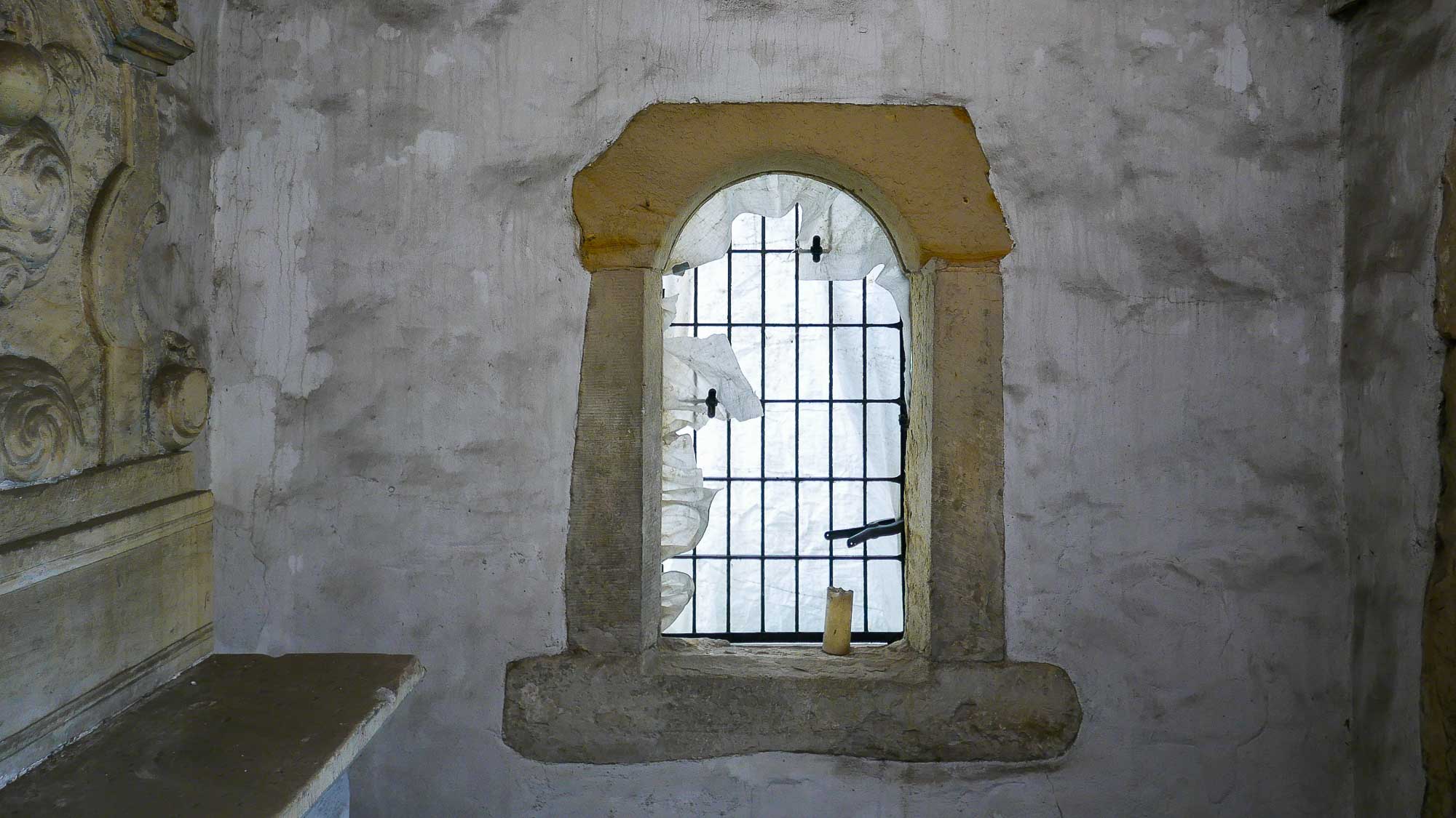 Die Kapelle besitzt zwei seitliche Fenster und eine südliche, zweiflügelige Eingangstür, die nicht geschlossen, sondern lediglich vergittert ist. Diese Öffnungen sorgen zwar für eine stetige Durchlüftung mit der anfallende Feuchte reduziert wird, dennoch besteht somit eine kontinuierliche Belastung durch Wind und Dreckeintrag.