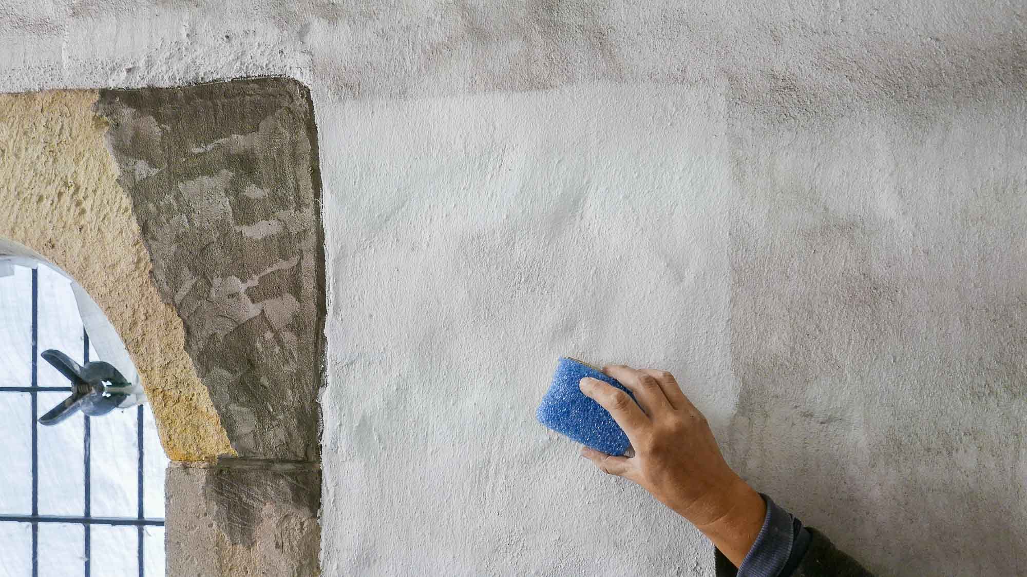 Bei den Innenwänden wurden nach dem Entfernen des Salzrasens im Sockelbereich, Fehlstellen ausgeputzt und zweimalig mit Histolith Fassadenkalk gestrichen.