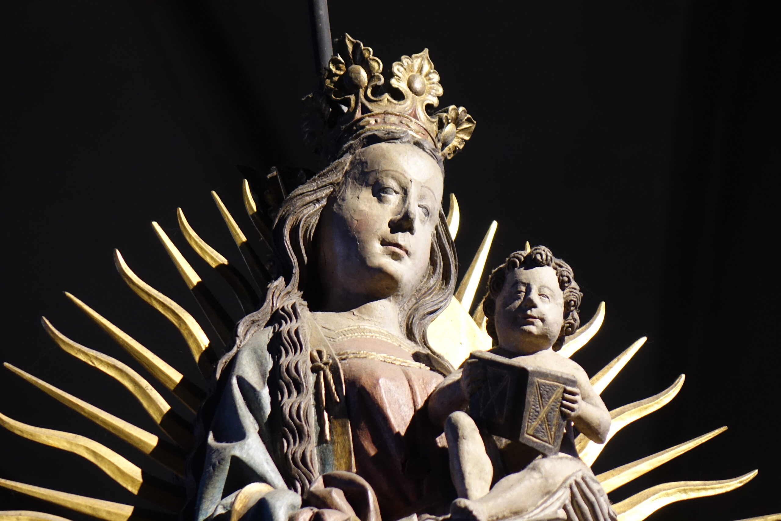 Besonders eindrucksvoll sticht die vielfarbige, gotische Doppelstrahlenmadonna aus der Zeit um 1480 hervor.